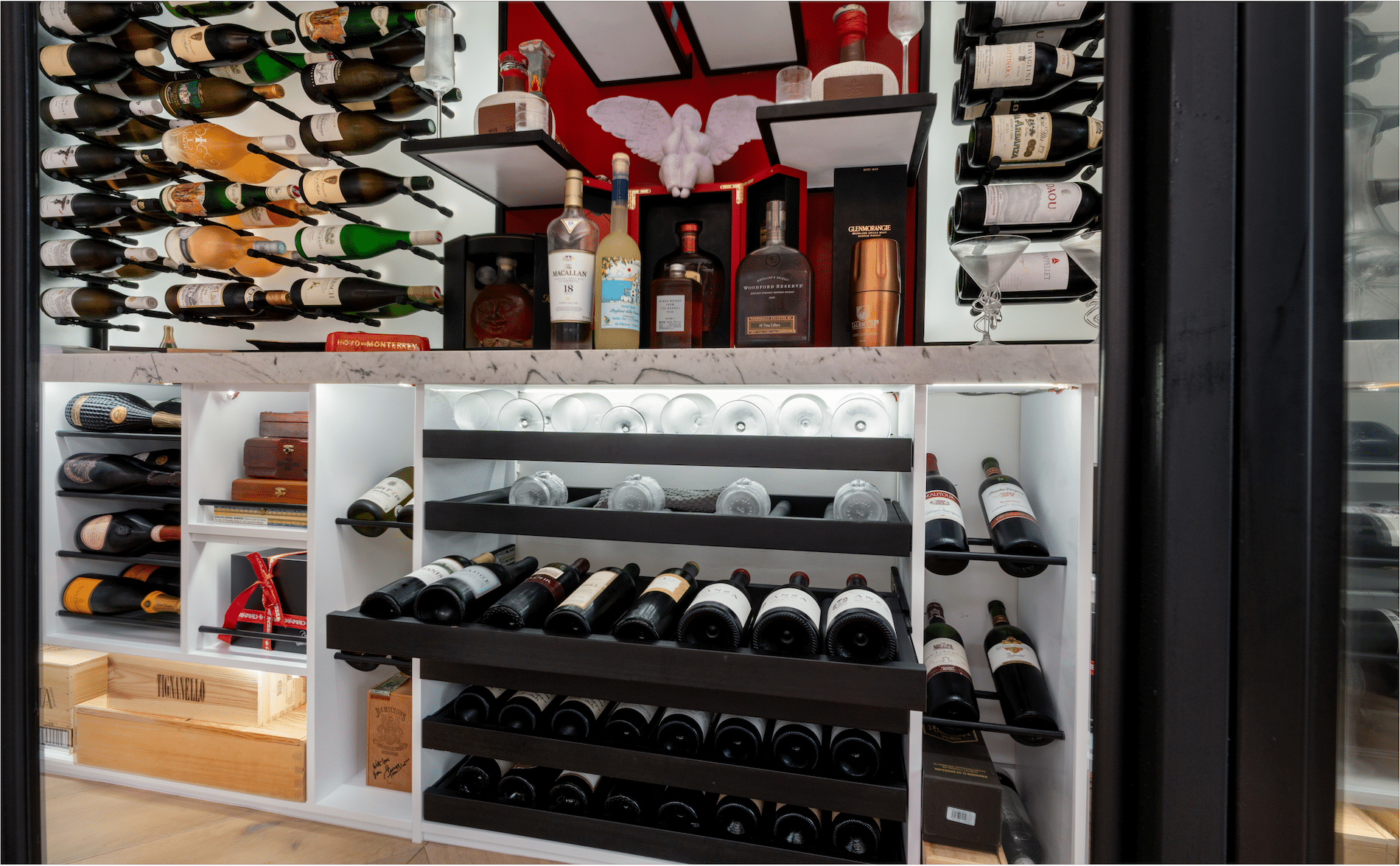 Some home features simply shift the way a space feels the moment you encounter them. This particular wine cellar for homes began not in a basement or hidden room, but with something far simpler—a blank stretch of wall and a homeowner who could imagine more. What once stood as unused space now reads like an architectural reveal: a sleek, built-in wine showcase that feels as though it has always belonged.
